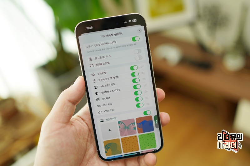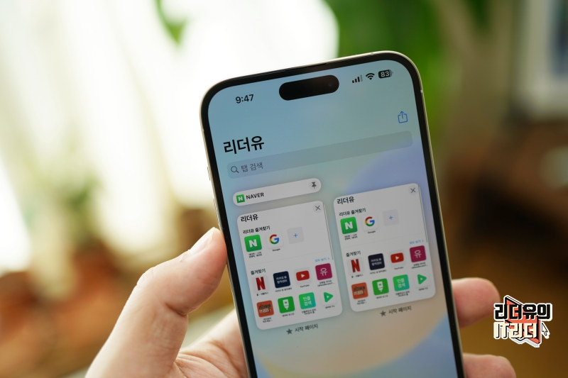 그리고 아이폰 사파리 탭 그룹은 탭 그룹별로 배경 이미지, 즐겨찾기를 설정해 사용자화 할 수 있습니다. 각각의 탭그룹으로 독립적으로 사용할 수 있는 변화입니다.