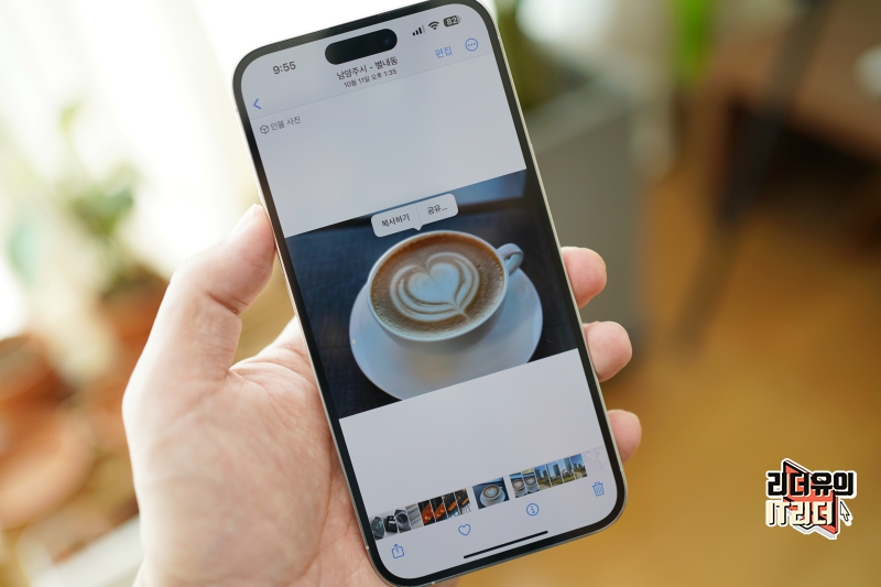 아이폰 iOS16.1 에서는 촬영한 사진에서 배경을 없애는 일명 사진 누끼따기를 기본 지원합니다. 이렇게 커피 사진을 찍고 해당 영역을 길게 누르면 이미지가 선택이 되고