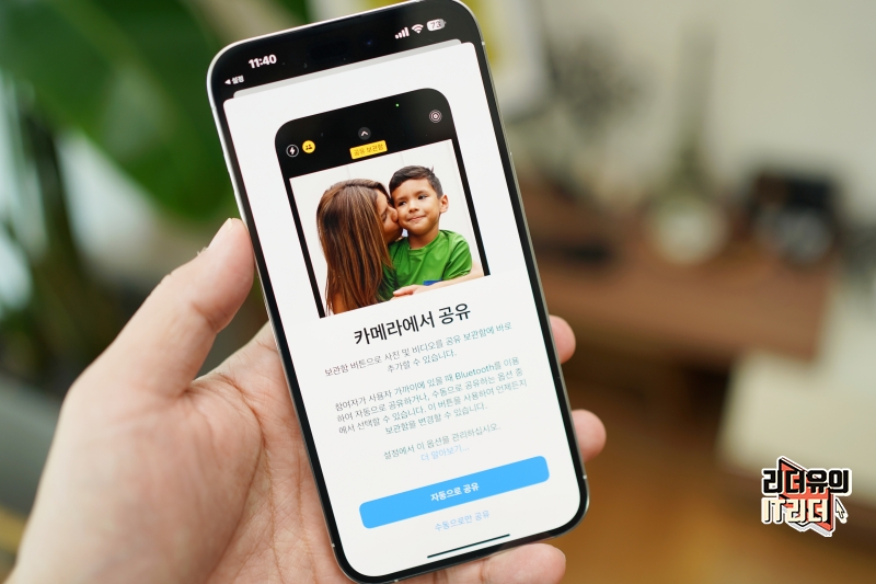 그리고 카메라에서 찍은 사진으로 바로 공유 보관함으로 보낼 수 있게 상단에 공유 보관함 체크가 있습니다. 추억을 나누는 연인끼리 함께 사용하면 좋은 기능입니다.