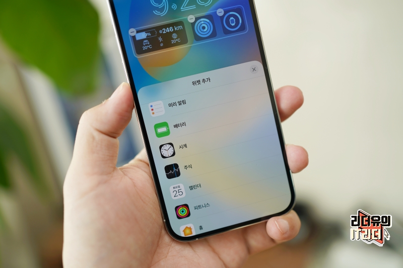 • 잠금 화면에서 위젯을 통해 날씨, 배터리 잔량, 예정된 캘린더 이벤트 등의 정보를 한눈에 확인할 수 있음
