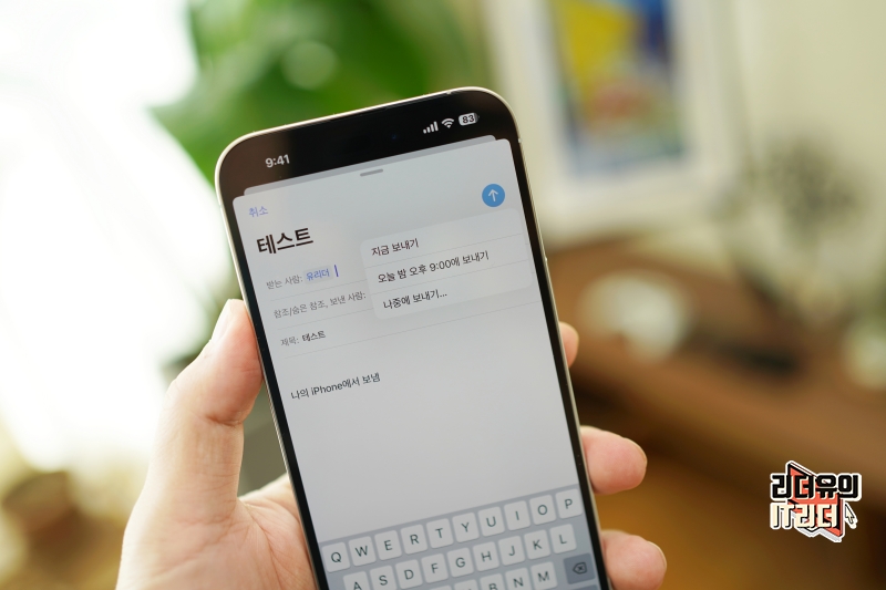 그리고 메일 전송을 시간 지정 기능으로 보낼 수 있습니다. 예를 들어 상대방에게 전달되면 좋은 시간을 설정하면 그 시간에 메일이 가게 됩니다. 사용 방법은 전송 화살표를 길게 누르면 위와 같은 메뉴를 볼 수 있습니다.