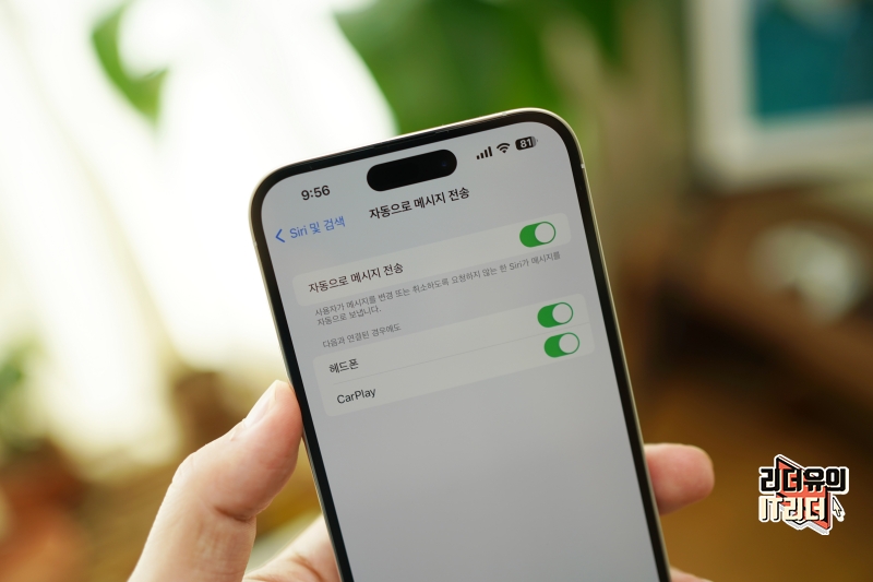 자동으로 메시지 전송을 할 수 있게 체크를 할 수 있습니다. 그리고 이 기능은 헤드폰, 카플레이서도 사용이 가능하게 설정이 가능합니다.