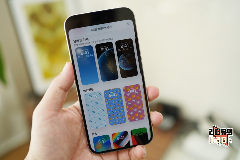 이런식으로 잠금화면에서 길게 누르면 여러가지 스타일의 잠금화면을 빠르게 변경할 수 있어 아이폰을 더욱 유니크하게 만날 수 있는 변화입니다.