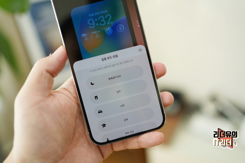 아이폰 iOS16.1에서는 잠금 화면과 집중 모드를 연결해서 사용할 수 있습니다. 특정 잠금 화면에 집중모드를 연결해서 해당 잠금 화면을 설정하면 자동으로 집중모드가 설정되게 할 수 있는 것입니다.