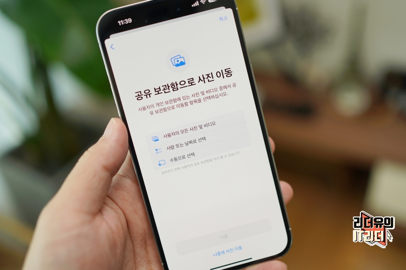 공유 보관함은 사용자의 모든 사진 및 비디오를 설정할 수도 있고 사람 또는 날짜 선택 또는 수동으로 선택이 가능합니다.