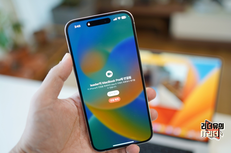 그리고 아이폰의 울트라 와이드 카메라를 활용해 화상 통화 중 사용자의 얼굴과 책상 위 모습을 모두 보여줄 수 있는 특별한 기능도 하고 있습니다.