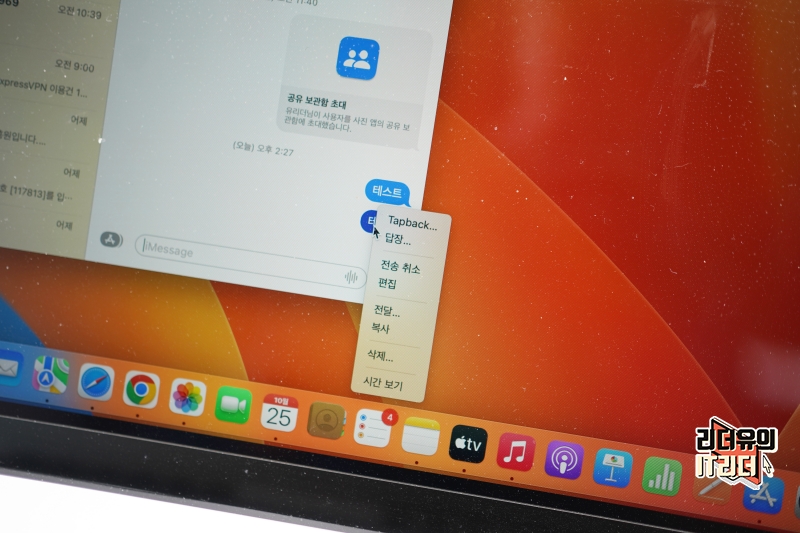 애플 맥OS macOS Ventura 벤츄라는 아이폰, 아이패드와 마찬가지로 아이메시지가 업그레이드 되었습니다. 메시지를 보낸 후 최대 15분 안에는 메시지 수정이 가능하고 최대 2분 안에 전송 취소도 가능합니다.