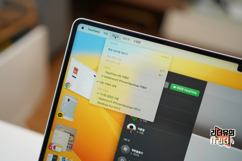 애플 맥OS macOS Ventura 벤츄라에서는 페이스타임 통화시 여러 애플 기기에서 맥으로 자연스럽게 전환을 할 수 있습니다. 아이폰, 아이패드로 페이스타임 하다가 맥을 사용하면 자연스럽게 넘겨서 사용할 수 있다는 의미입니다. 역시 애플다운 연동성입니다.