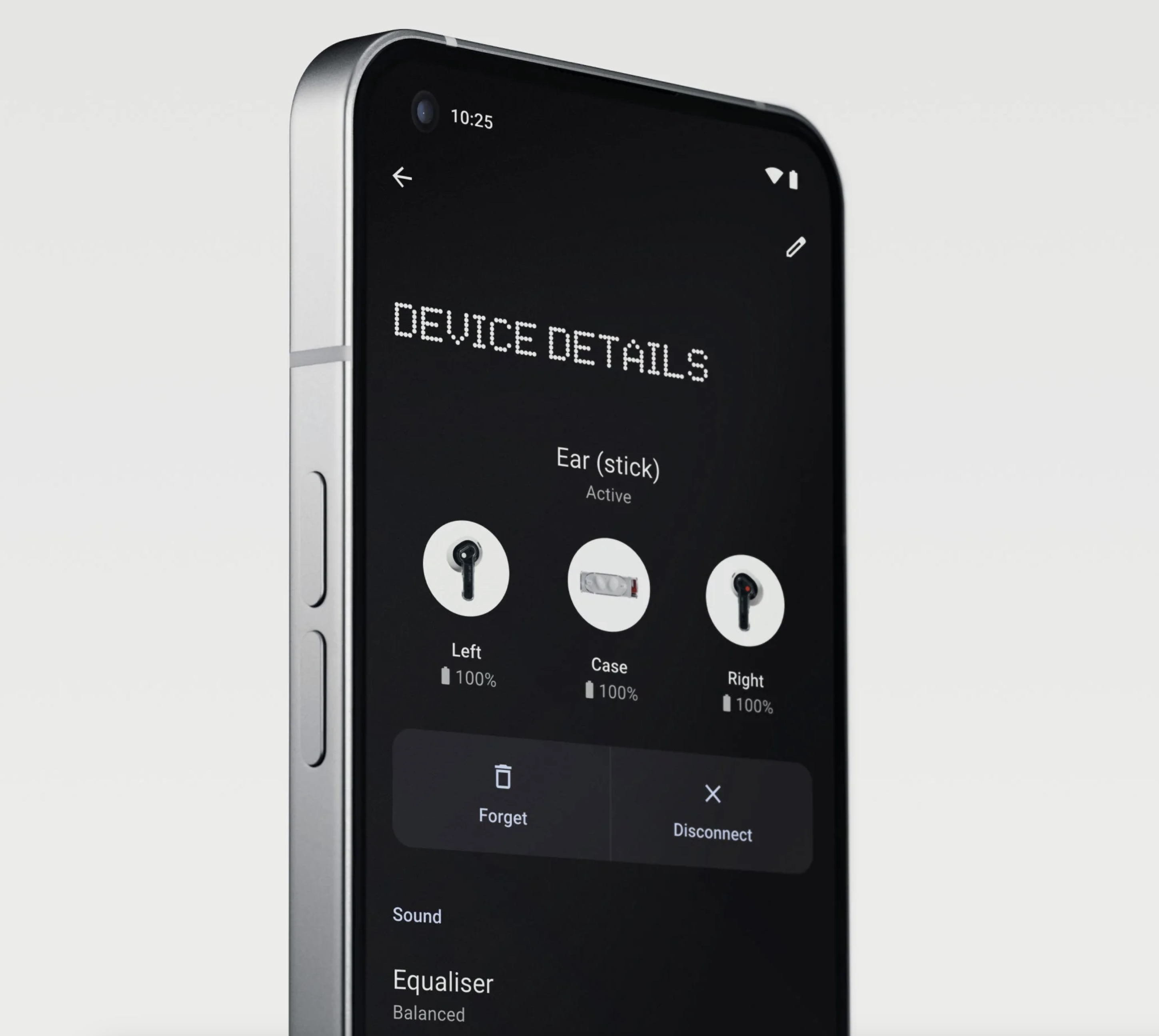 낫싱 이어스틱은 낫싱폰과의 최적화된 연결성도 제공하고 있습니다. 애플의 컨셉을 따라가는 것으로 앱 지원도 충실히 하고 있고 바로 연결되는 연동성도 갖추고 있습니다.