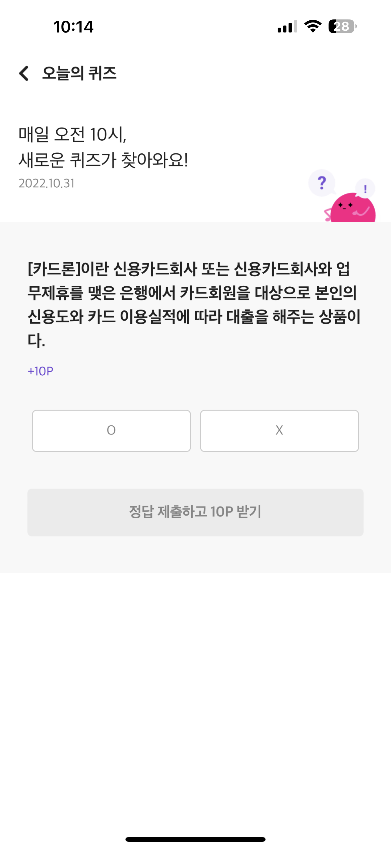 그래서 오늘은 O.X 퀴즈로 나왔는데.. 정답은