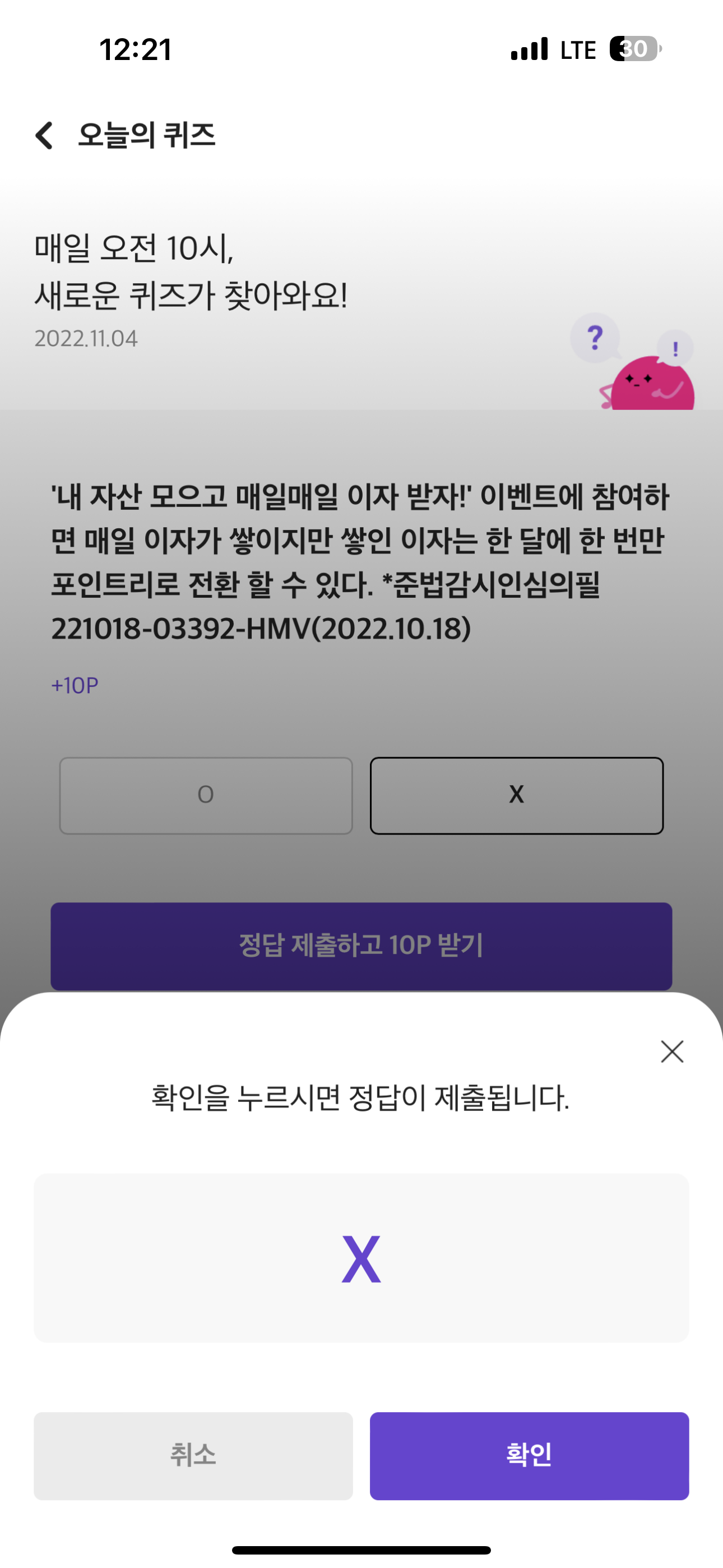리브메이트 오늘의 퀴즈 정답은 X 입니다