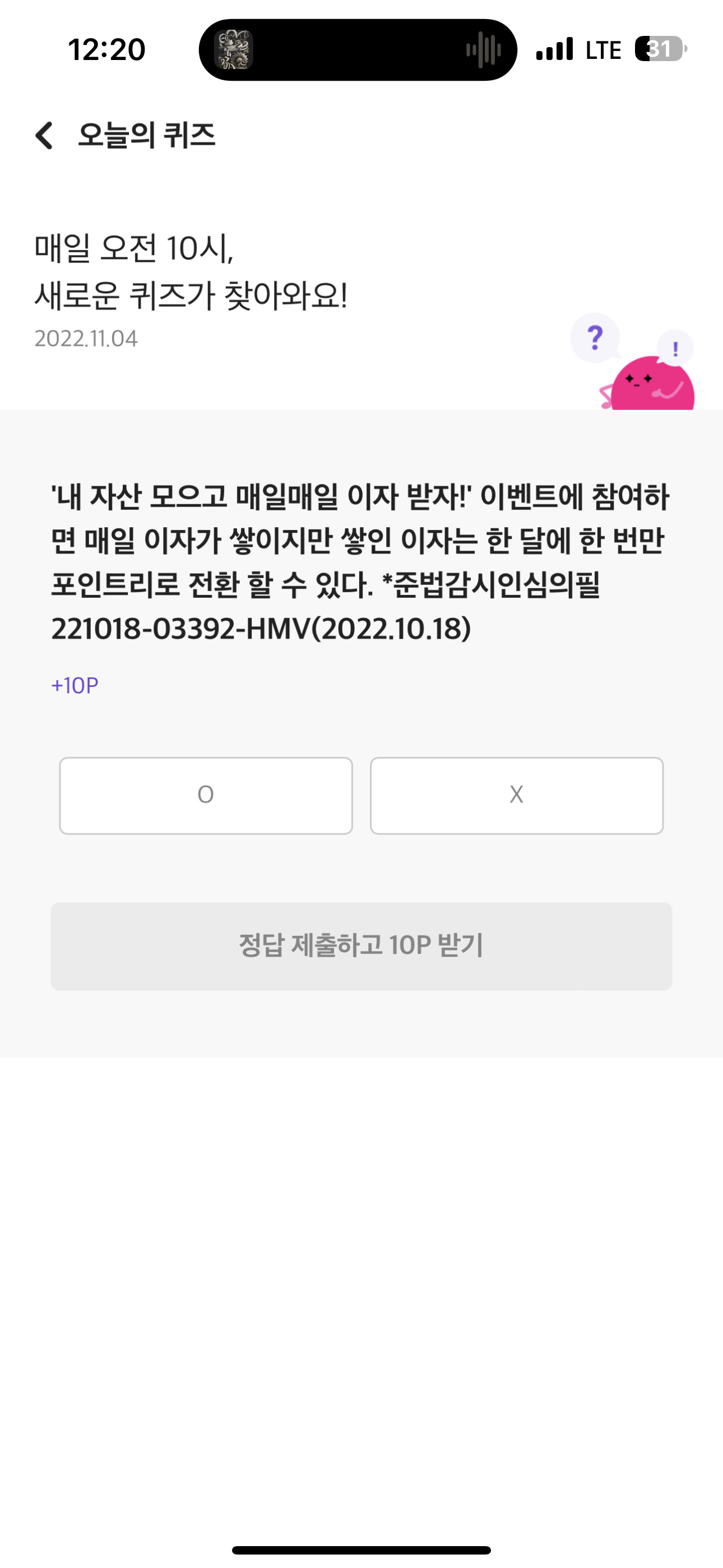 리브메이트 오늘의 퀴즈 11월 4일 정답 ( 내 자산 모으고 매일매일 이자 받자 이벤트에 참여하면 매일 이자가 쌓이지만 )