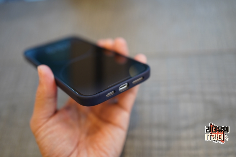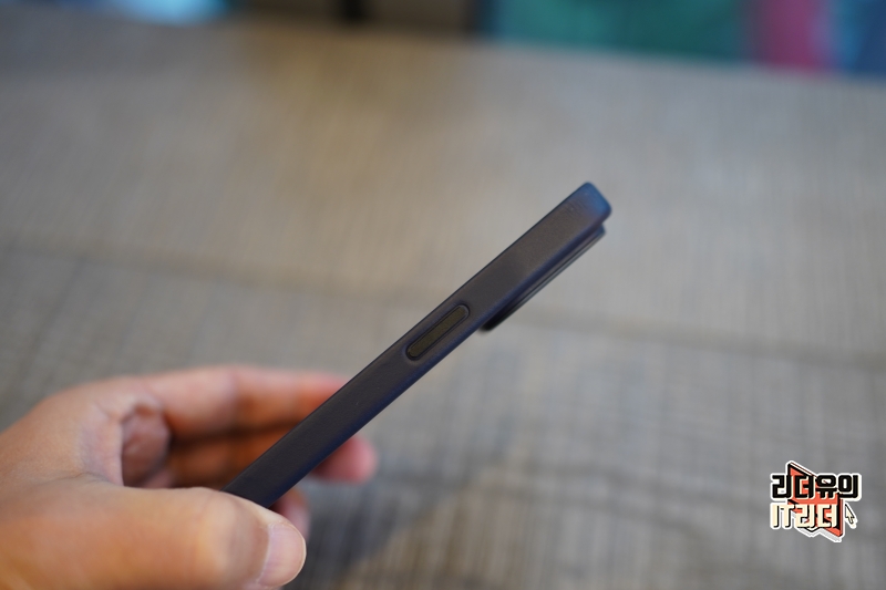왼쪽에는 볼륨 버튼과 진동 스위치 영역이 있습니다. 버튼 영역은 플라스틱으로 되어 있고 누르는 클릭감도 좋습니다. 저렴한 케이스들과 확실히 다른 조작감입니다.