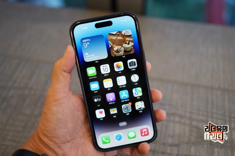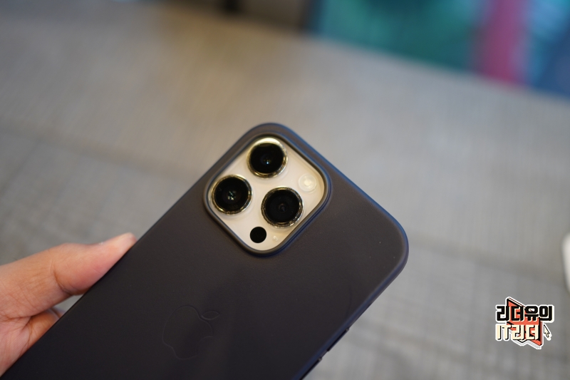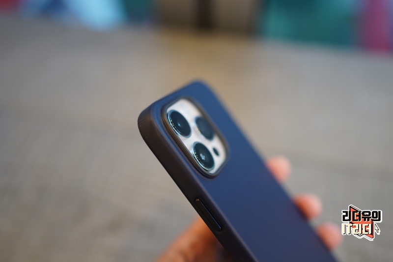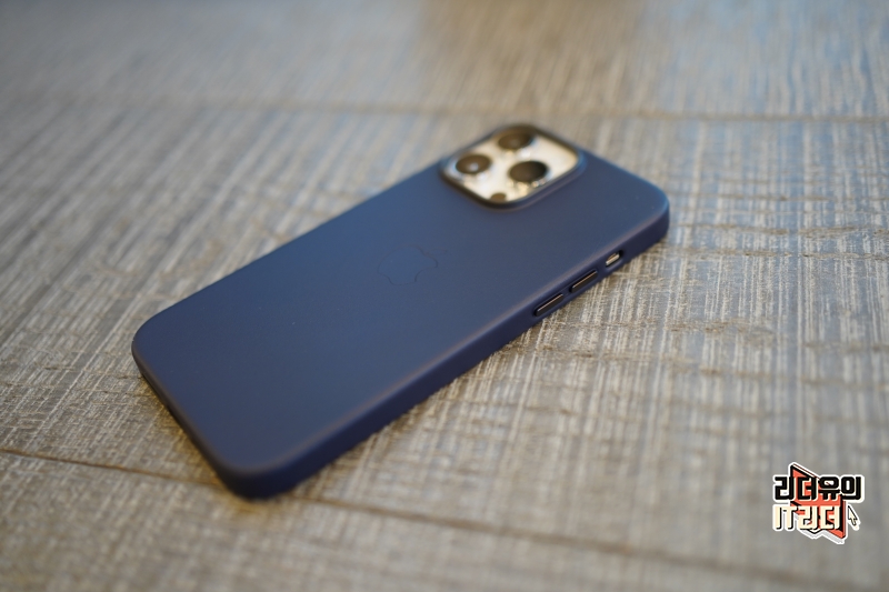 아이폰14 프로 맥스에 정품 맥세이프 가죽 케이스를 장착한 모습입니다. 전체적으로 두께가 얇아서 장착했을때 사이즈가 많이 커지지 않아서 좋습니다.