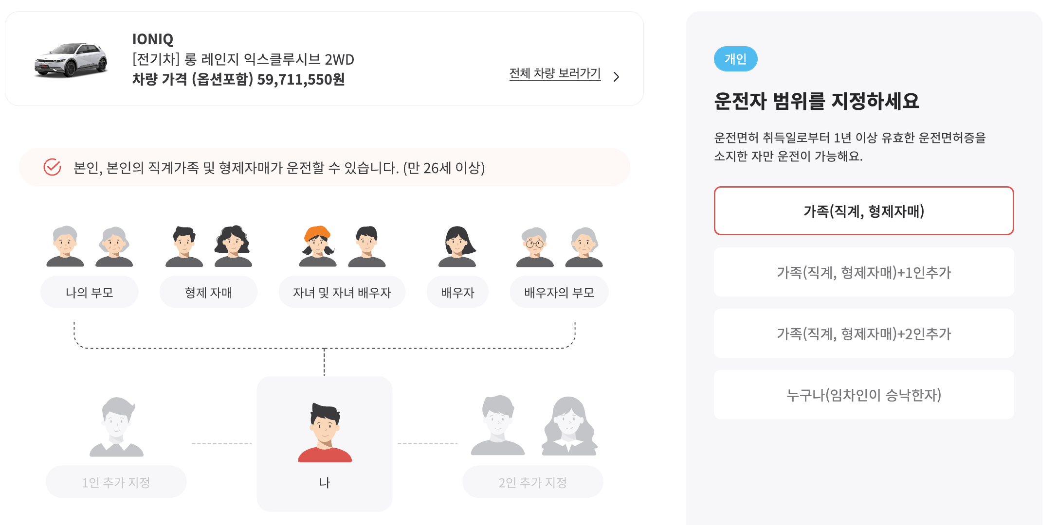 함께 운전할 운전자 범위도 설정이 가능합니다.