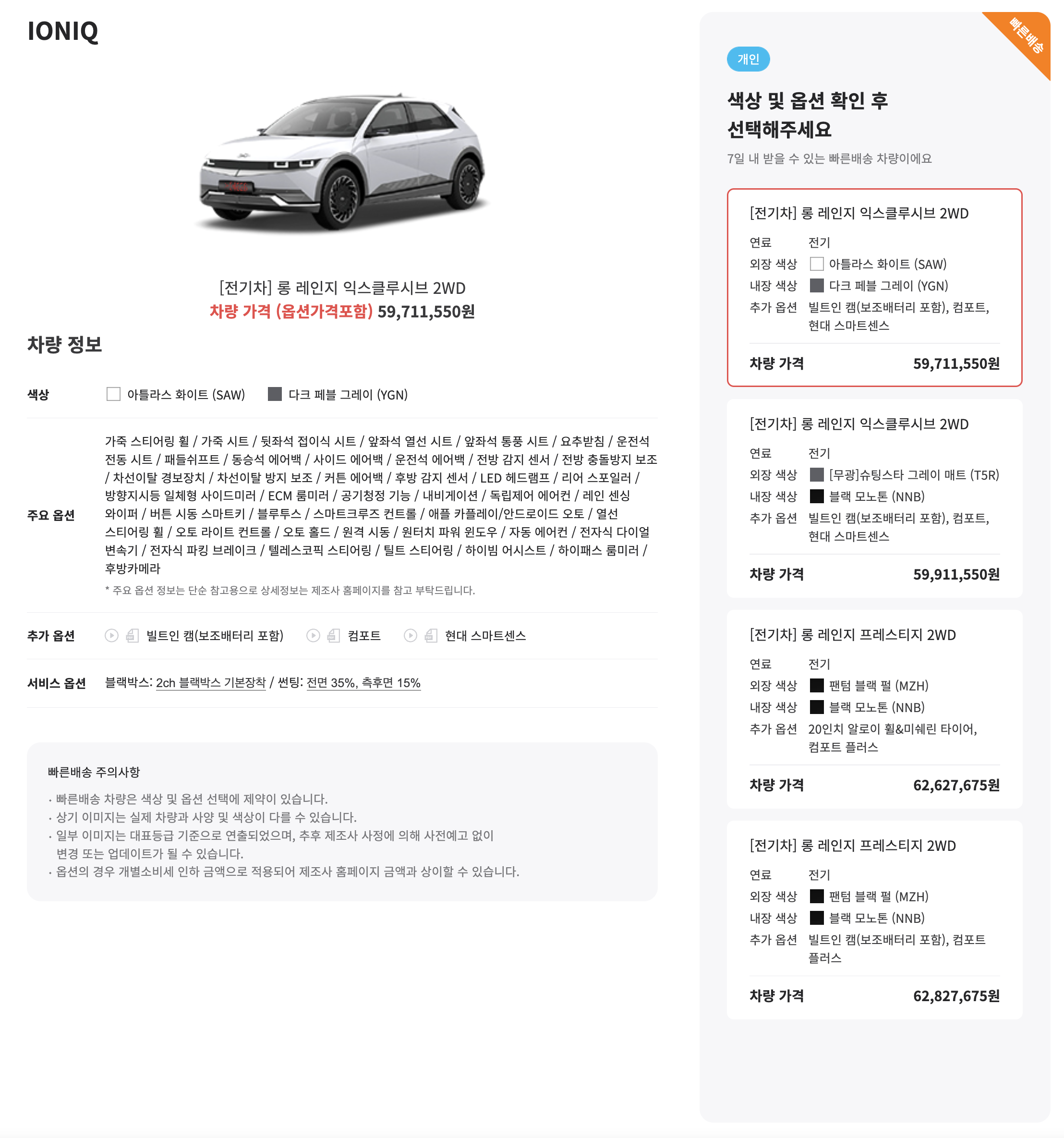 아이오닉5 전기차의 경우 여러 옵션을 선택할 수 있습니다.