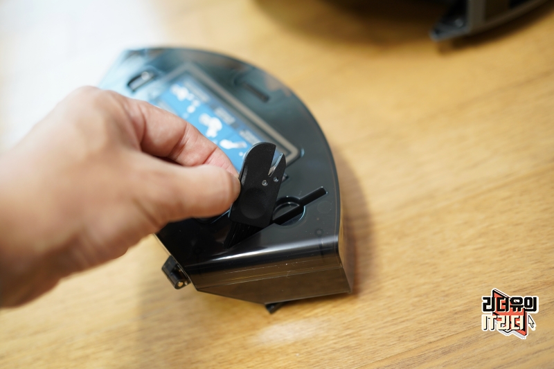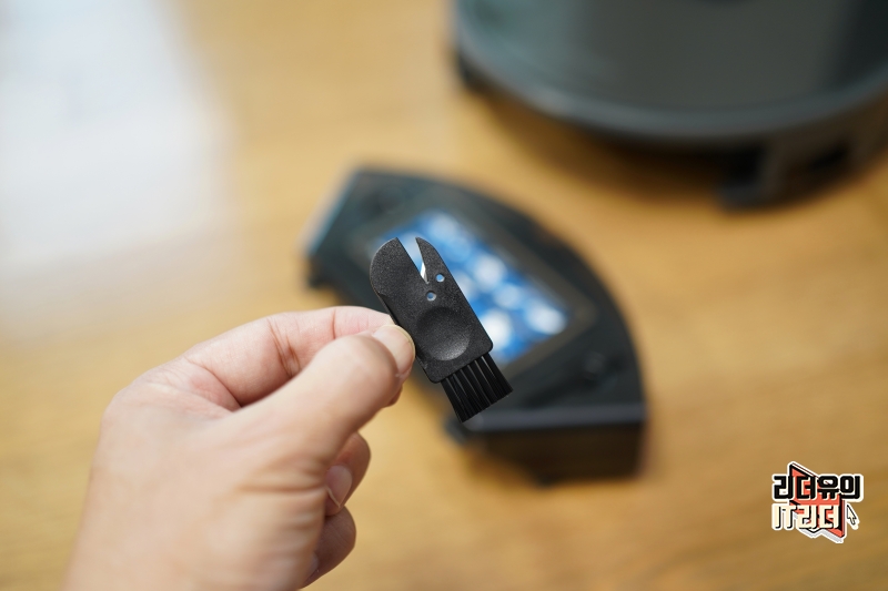 그리고 센스있게 먼지통에는 내장된 청소 도구를 가지고 있습니다. 먼지통을 비울때 사용하라는 배려입니다.