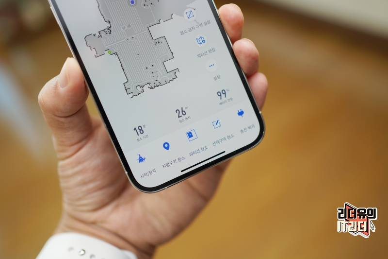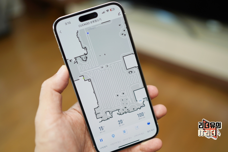 넓은 공간도 꼼꼼하게 청소를 하는 것을 볼 수 있습니다. 이는 앱으로도 정밀한 움직임 파악이 가능해 어떻게 청소를 했는지 시각적으로 알 수 있습니다.