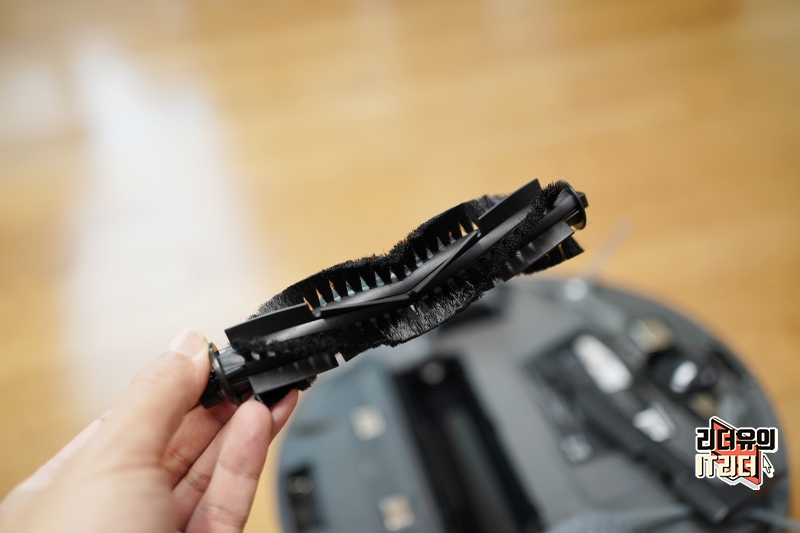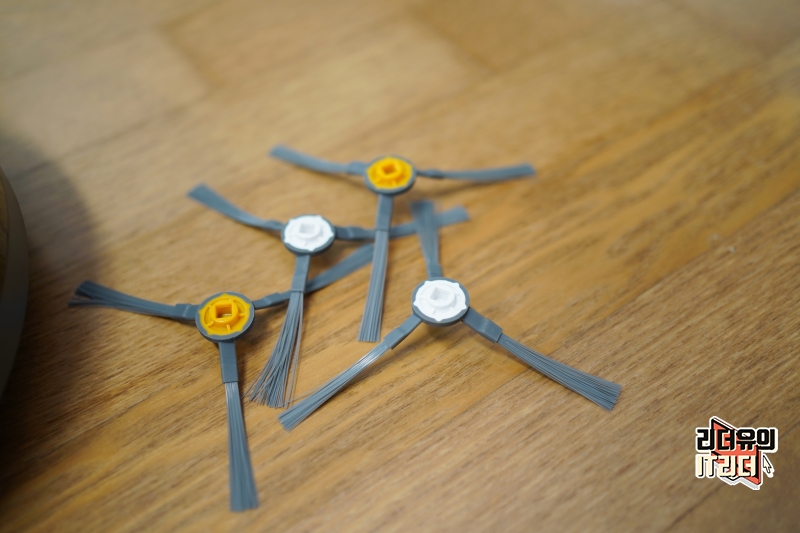 사이드 브러쉬를 장착한 모습입니다. 모서리 먼지를 쓸어 담는 역할을 합니다.