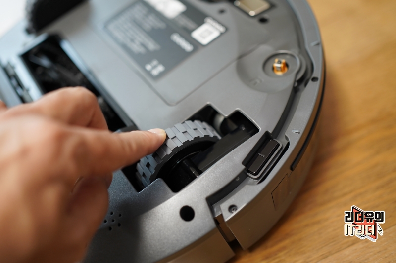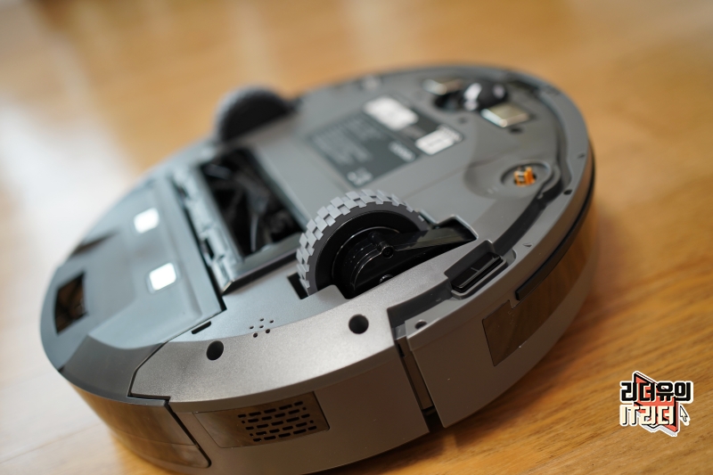 바퀴는 15mm 문턱도 넘어다닐 수 있게 설계되어 있습니다. 그리고 바퀴 옆으로는 추락 방지 센서가 있어 높은 곳에서 아래로 안떨어지게 막아주고 있습니다.