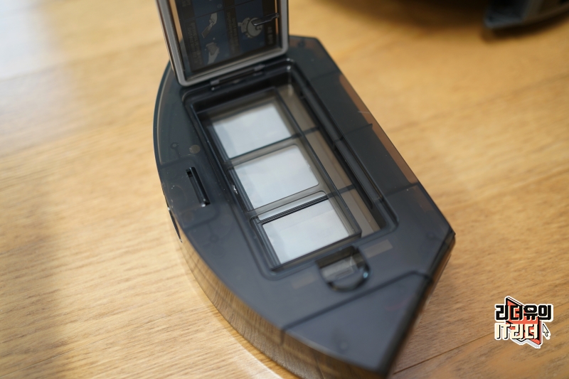 먼지통은 아예 덮개를 오픈하는 방식으로 비울 수가 있습니다. 이런 먼지통의 장점은 내부 청소가 쉬워 관리 측면에서 유리합니다.