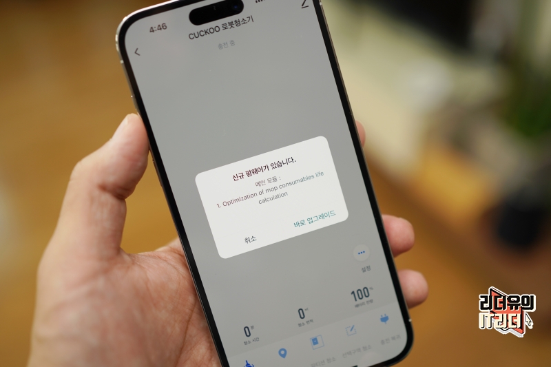 앱에 연결되면 새로운 펌웨어가 있을때 알려주고 무선으로 펌웨어 서비스를 받을 수 있습니다. 계속해서 진화하는 로봇청소기의 모습을 볼 수 있는 부분입니다.