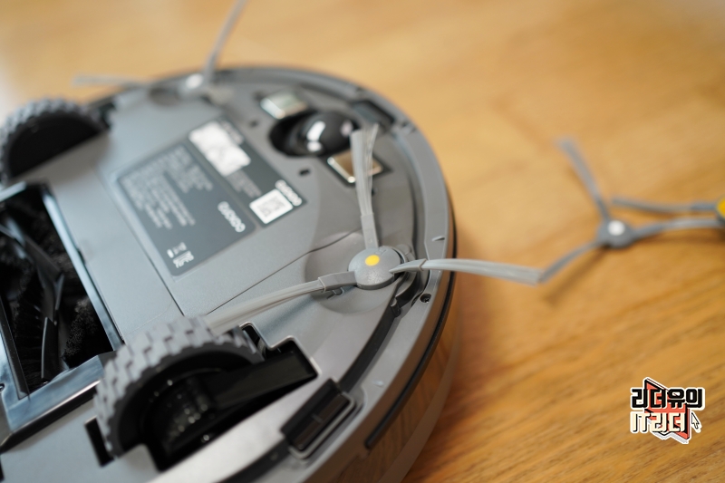 사이드 브러쉬를 장착한 모습입니다. 모서리 먼지를 쓸어 담는 역할을 합니다.