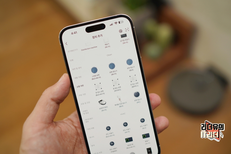 소형 가전 카테고리에서 로봇청소기를 선택할 수 있습니다. 두번째 로봇청소기 (Wi-Fi)를 선택해 연결이 가능합니다.