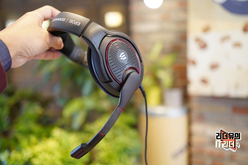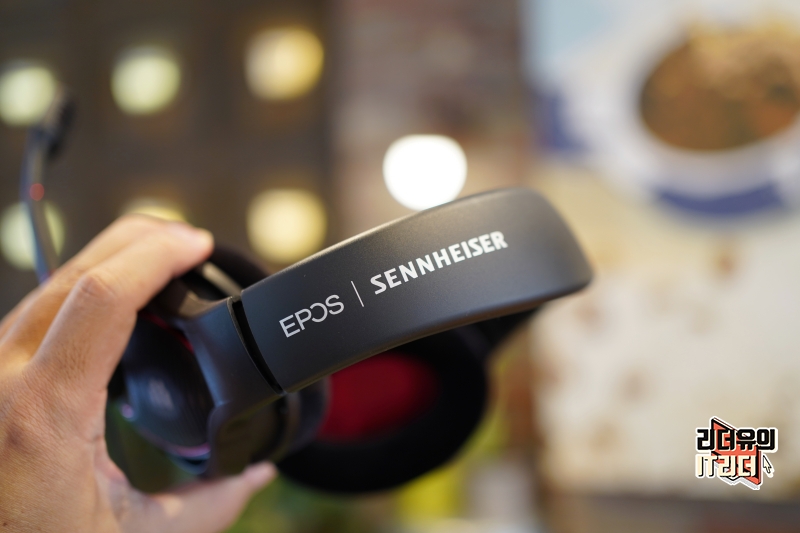 헤어밴드 위쪽에는 EPOS 젠하이저 브랜드를 보여주고 있습니다.