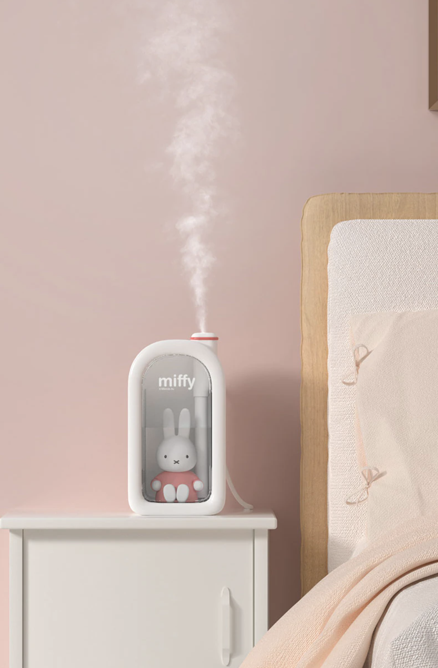 캐릭터 미피(miffy)를 활용한 무드등 가습기 입니다. 보기만 해도 심쿵이죠. 전체적으로 소프트한 재질로 되어 있고 미피가 들어가 있는 집을 형상화한 디자인입니다.