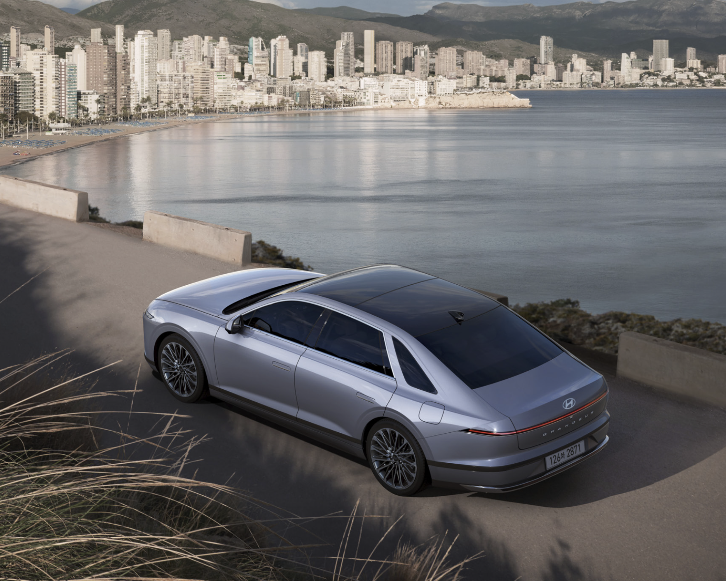 측면부는 2,895mm의 여유로운 공간성을 보여주는 거대함을 느낄 수 있습니다. 그리고 고급스러움을 살려주는 프레임리스 도어와 플러시 도어 핸들로 세련된 디자인을 느낄 수 있습니다.
