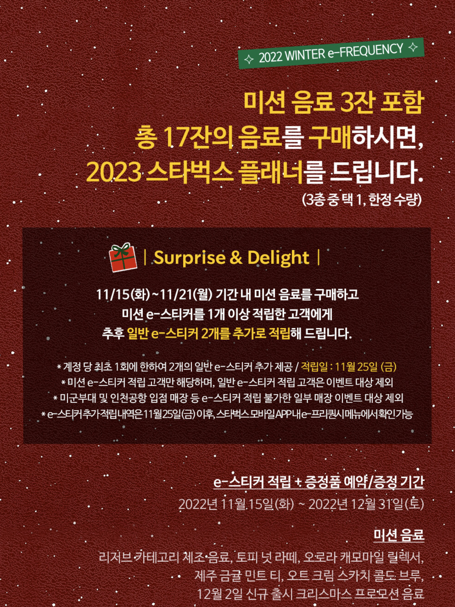 2022 스타벅스 윈터 e-프리퀀시 일정