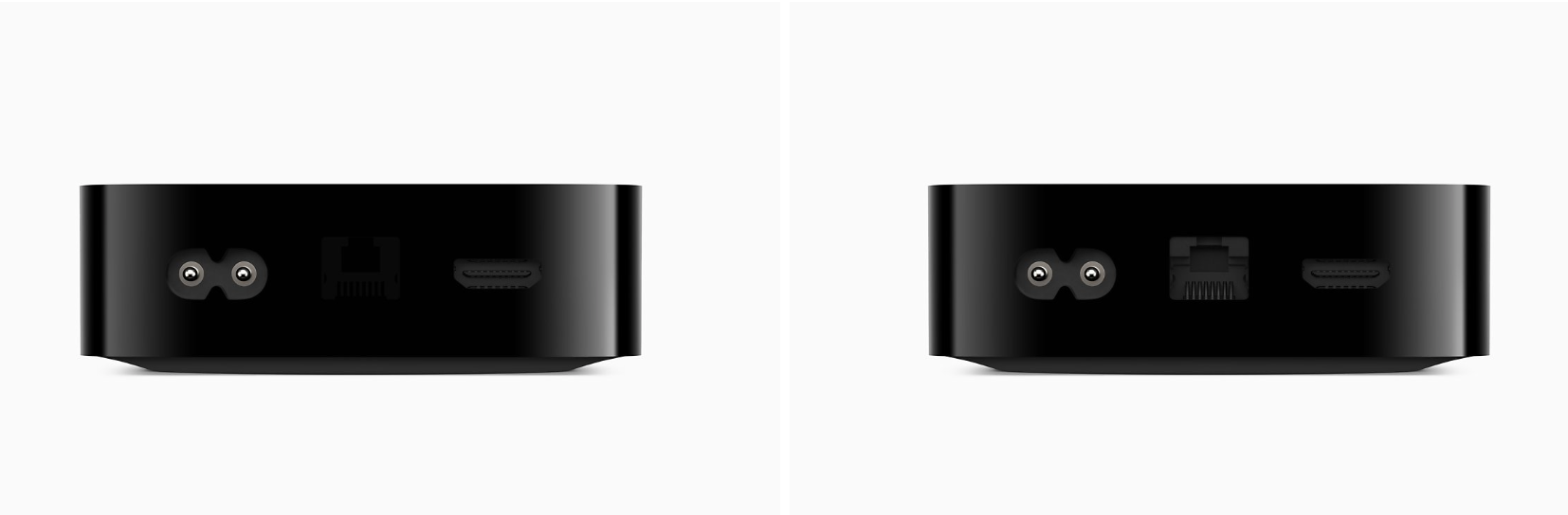 2022 애플 TV 4K 3세대는 2가지 모델로 출시가 되었습니다. Wi-Fi 만을 탑재한 64GB 모델이 있고 Wi-Fi와 이더넷 단자를 포함한 128GB 모델이 있습니다.