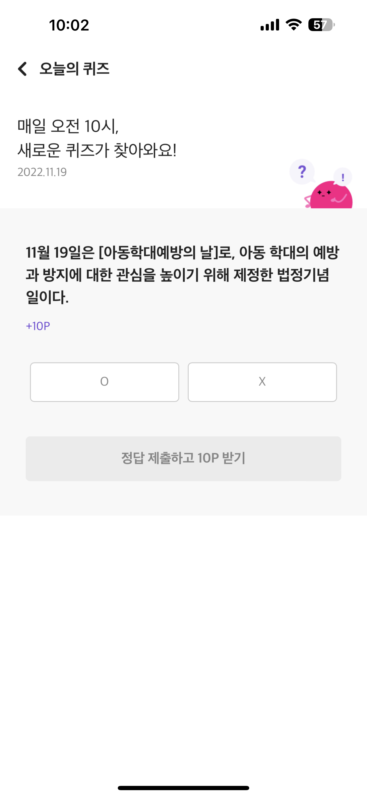 리브메이트 오늘의 퀴즈 11월 19일 정답 ( 11월 19일은 아동학대예방의 날로, 아동 학대의 예방과 방지에 대한 관심을 높이기 위해 )
