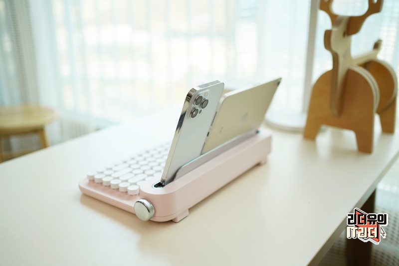 액토 B305 아이패드 거치대 키보드 디자인은 레트로 키보드를 현대적인 디자인으로 잘 해석한 키보드입니다. 타자기 모양의 원형 키 디자인과 풋풋한 색상의 매력은 인테리어 소품으로도 합격점을 줄 수 있을 정도로 예쁜 디자인을 가지고 있습니다. 참고로 저렴한 키보드 같은 경우는 색상이나 재질의 느낌이 아쉬운데요. 이 제품은 부드러운 소재의 느낌과 컬러 느낌도 좋습니다.