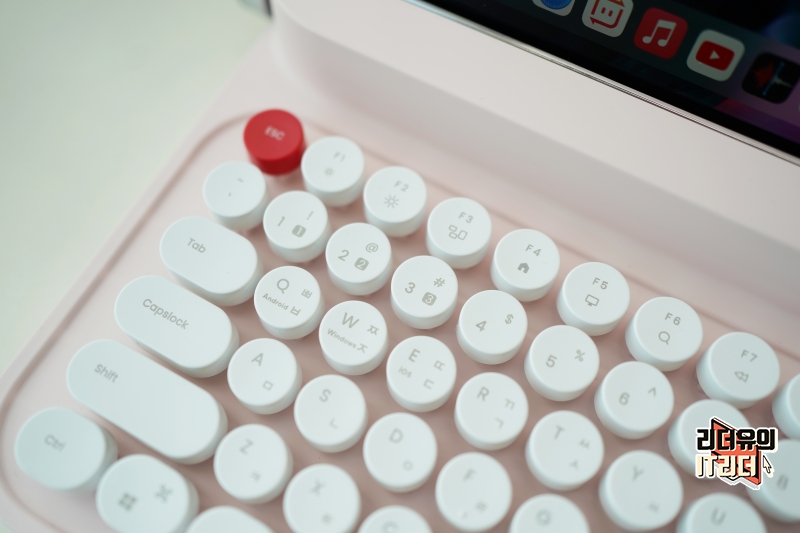 타자기 모양을 닮은 키보드 영역입니다. 원형의 키로 귀여운 매력을 느낄 수 있습니다.