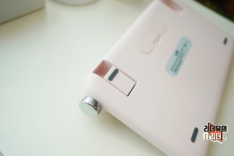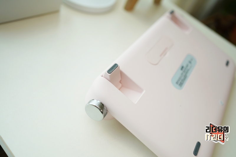 다이얼을 돌리면 하단의 다리가 나와서 약간의 키보드 각도를 줄 수 있습니다. 사용 환경에 따라 사용하시면 됩니다.
