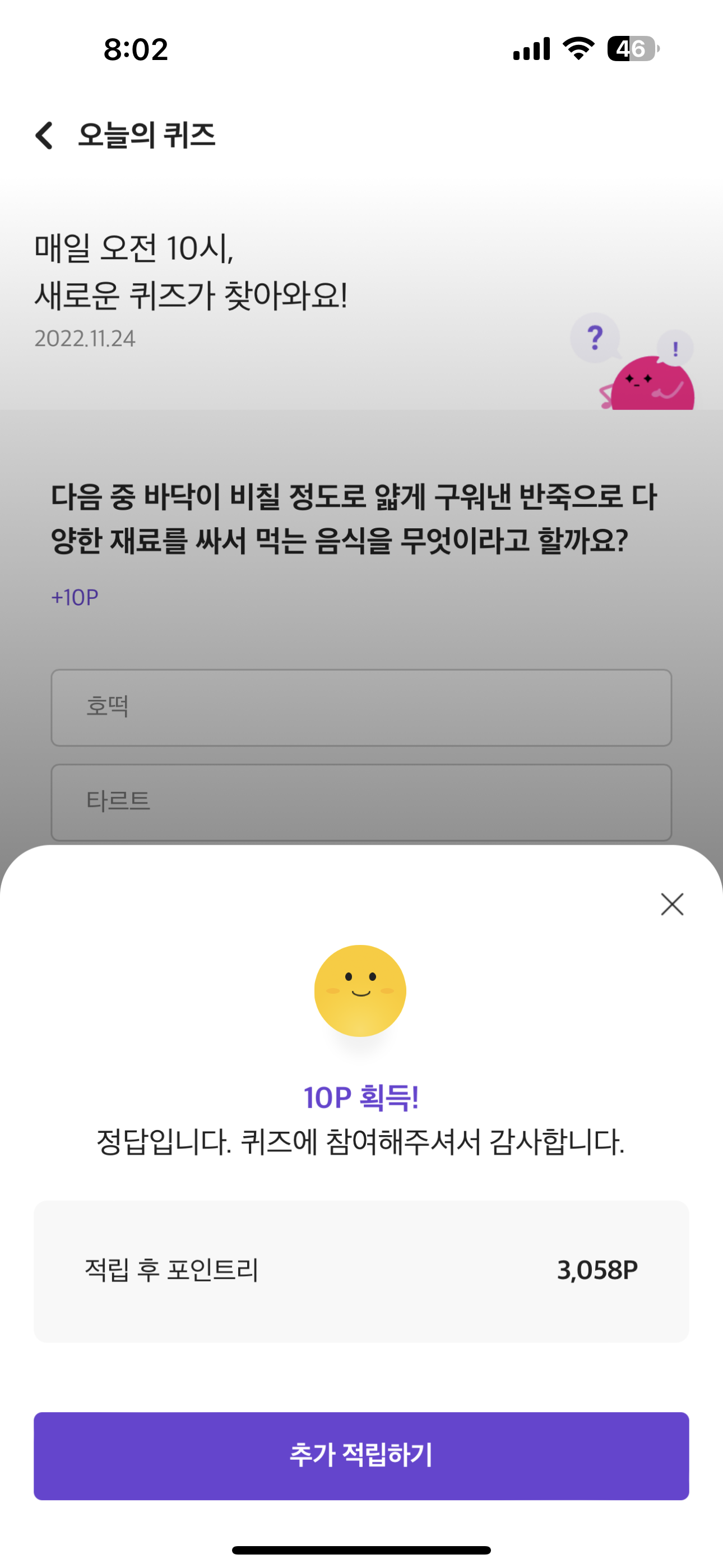 리브메이트 오늘의 퀴즈 11월 24일 정답 ( 다음 중 바닥이 비칠 정도로 얇게 구워낸 반죽으로 다양한 재료를 싸서 먹는 음식 )