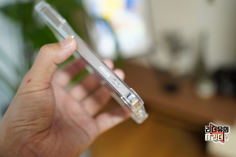 그리고 모서리 영역은 한번더 충격 보호를 위해 범퍼 형태로 더 도톰하게 되어 있습니다. 투명케이스라 이 부분도 그렇게 부각되지 않아서 좋습니다.