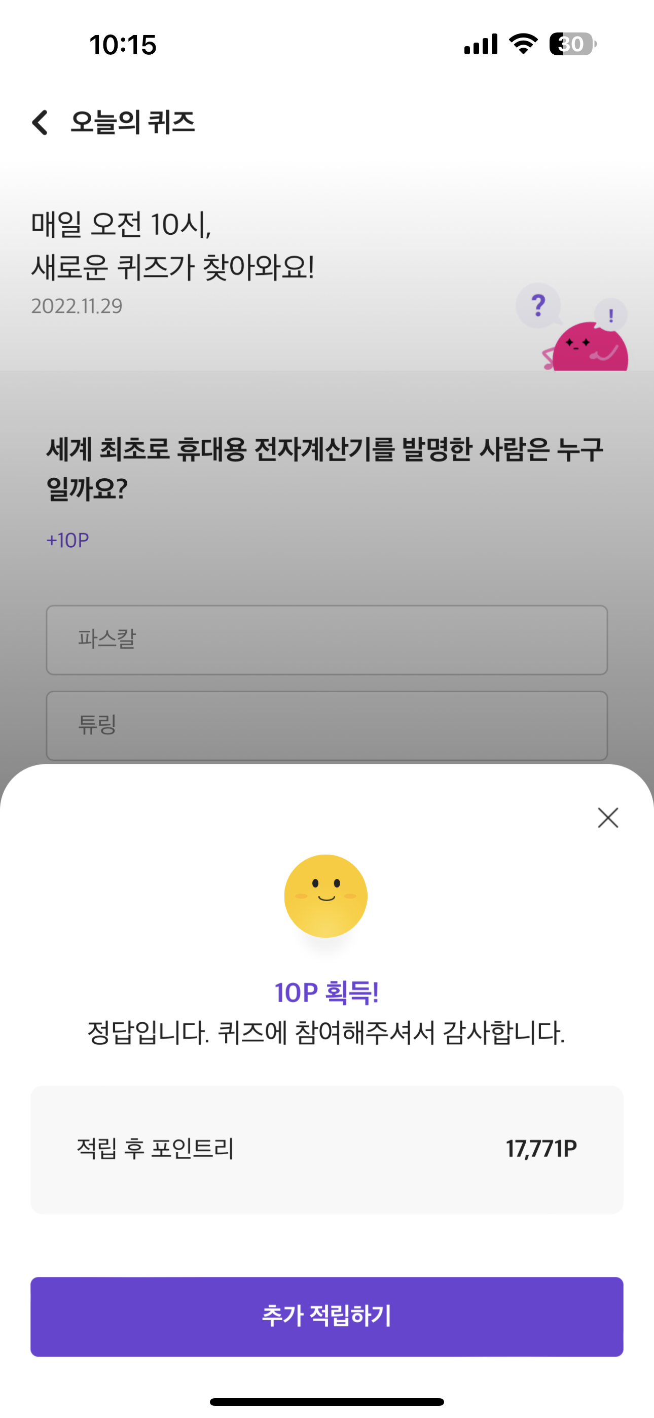 리브메이트 오늘의 퀴즈 11월 29일 문제가 나왔습니다.