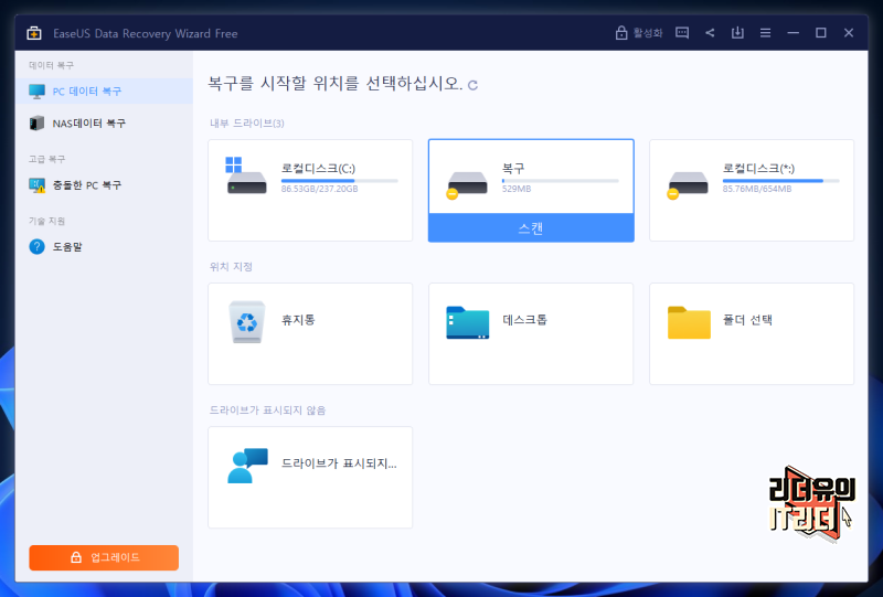여기서 핵심은 무료 데이터 복구가 있기 때문에 용량이 작거나 1회성 사용일 경우는 무료 서비스를 활용하시면 부담없이 삭제 파일 복구, 휴지통 복구를 할 수 있습니다.