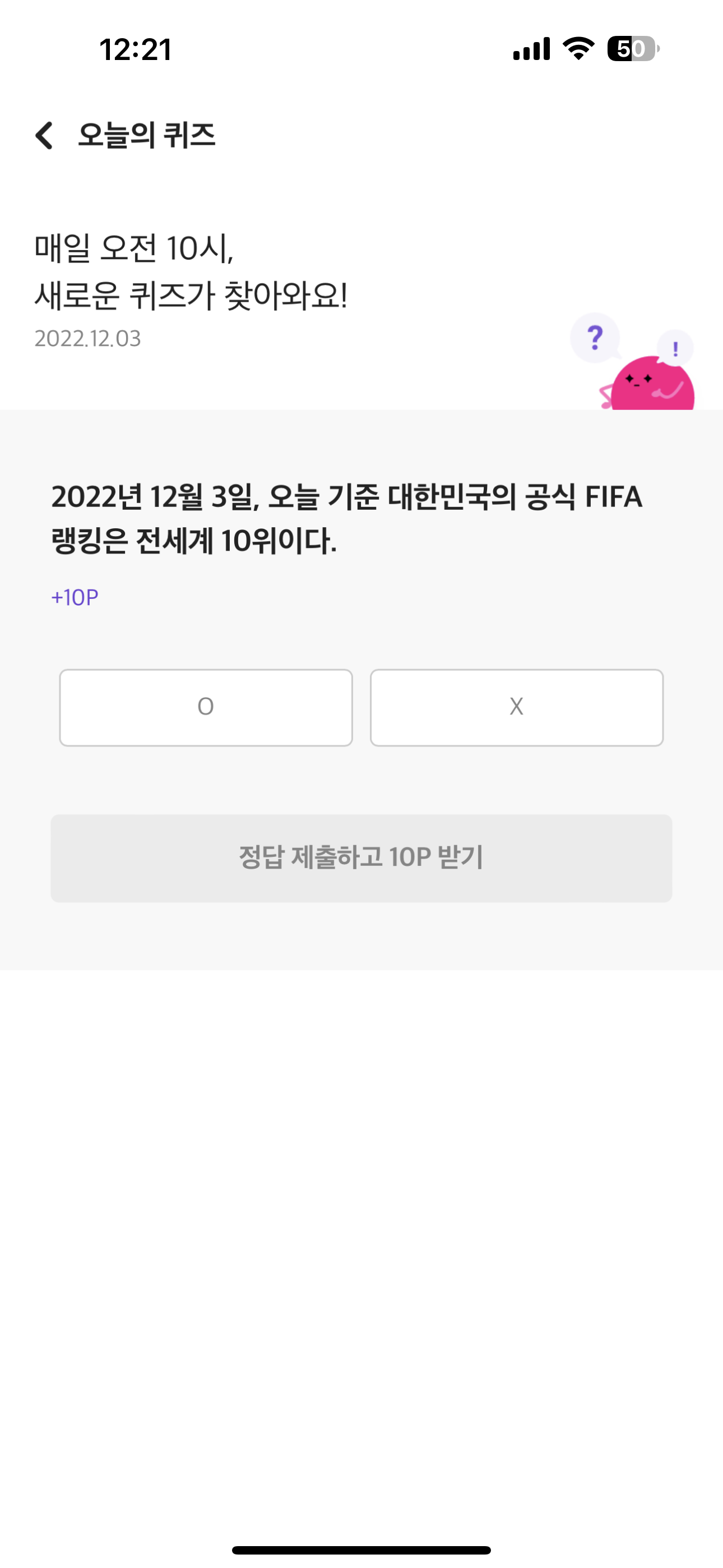 리브메이트 오늘의 퀴즈 정답은 X 입니다