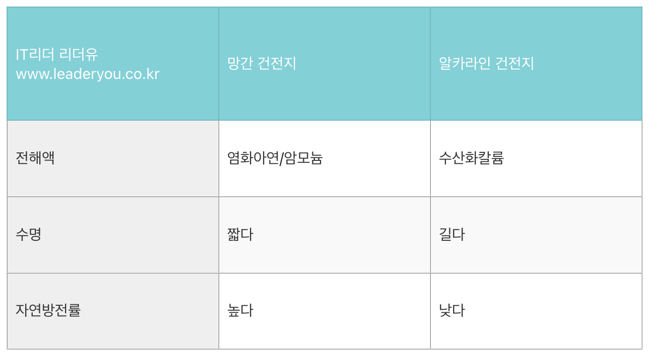 망간 건전지 VS 알카라인 건전지