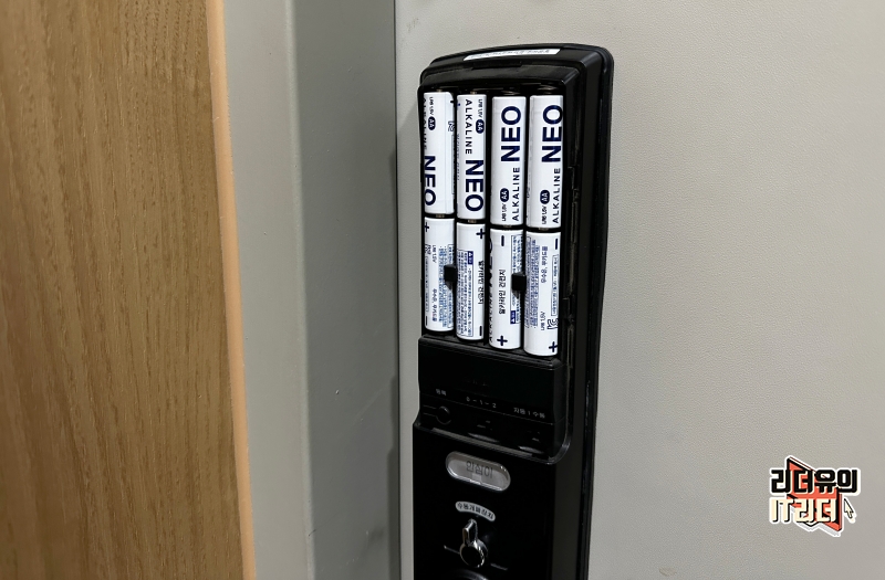디지털 도어락 건전지는 그럼 뭘 선택하면 좋을까요? 8개 정도가 들어가니 부담이 되서 망간 건전지를 교체하는 경우들이 있는데요. 망간 건전지는 자연방전률이 높습니다. 즉, 디지털 도어락 건전지로 맞지 않습니다. 디지털 도어락 같은 경우는 대기 시간이 길기 때문에 오래 버틸 수 있는 알카라인 건전지가 좋은 선택지 입니다.