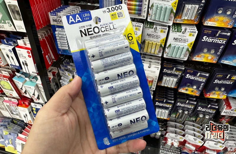 일단 가장 눈에 띄는 자리에는 다이소 건전지 NEO CELL 이 있습니다. 16개가 들어있고 가격은 3,000원 입니다. 저렴하죠. 그런데 고민이 되는 한가지가 생깁니다. 바로 더 저렴한 건전지가 있다는 것입니다.