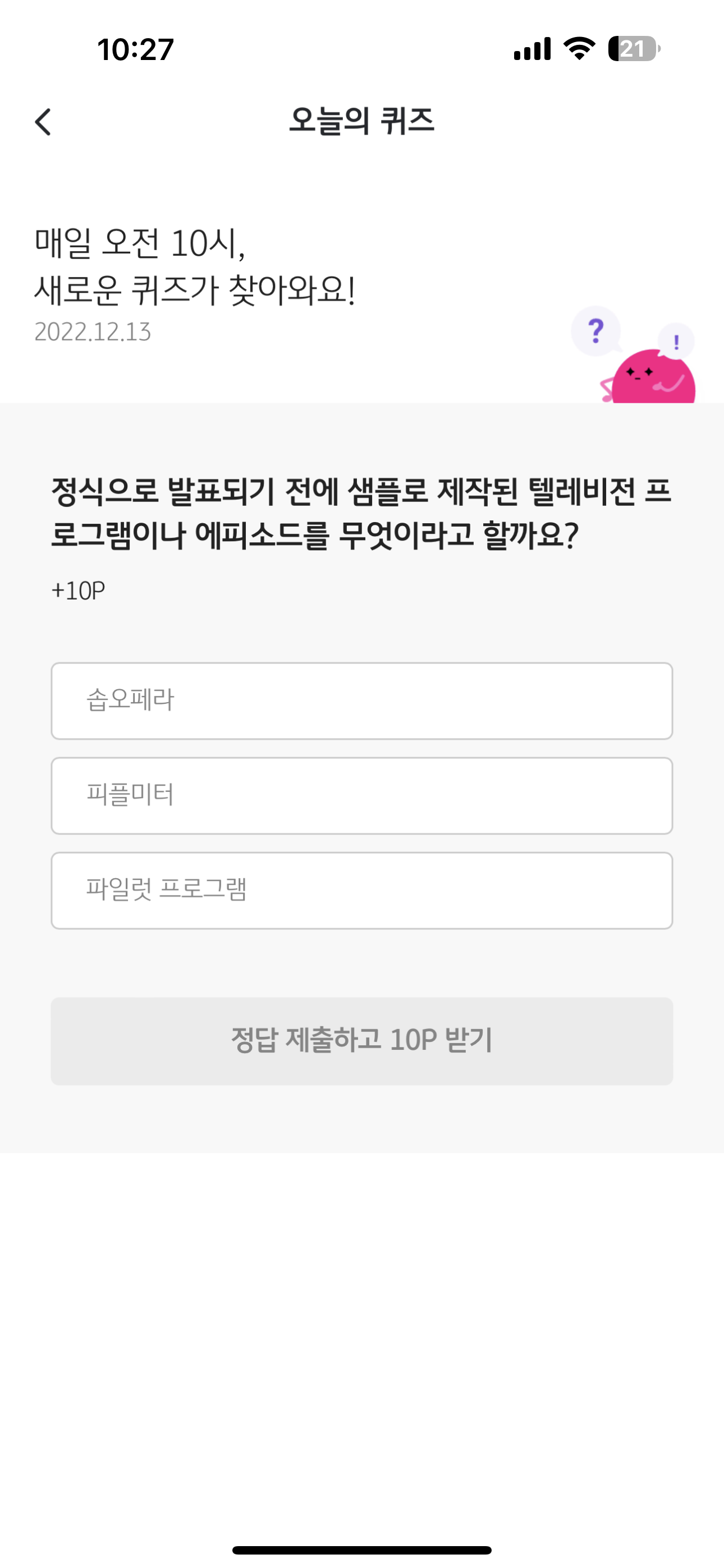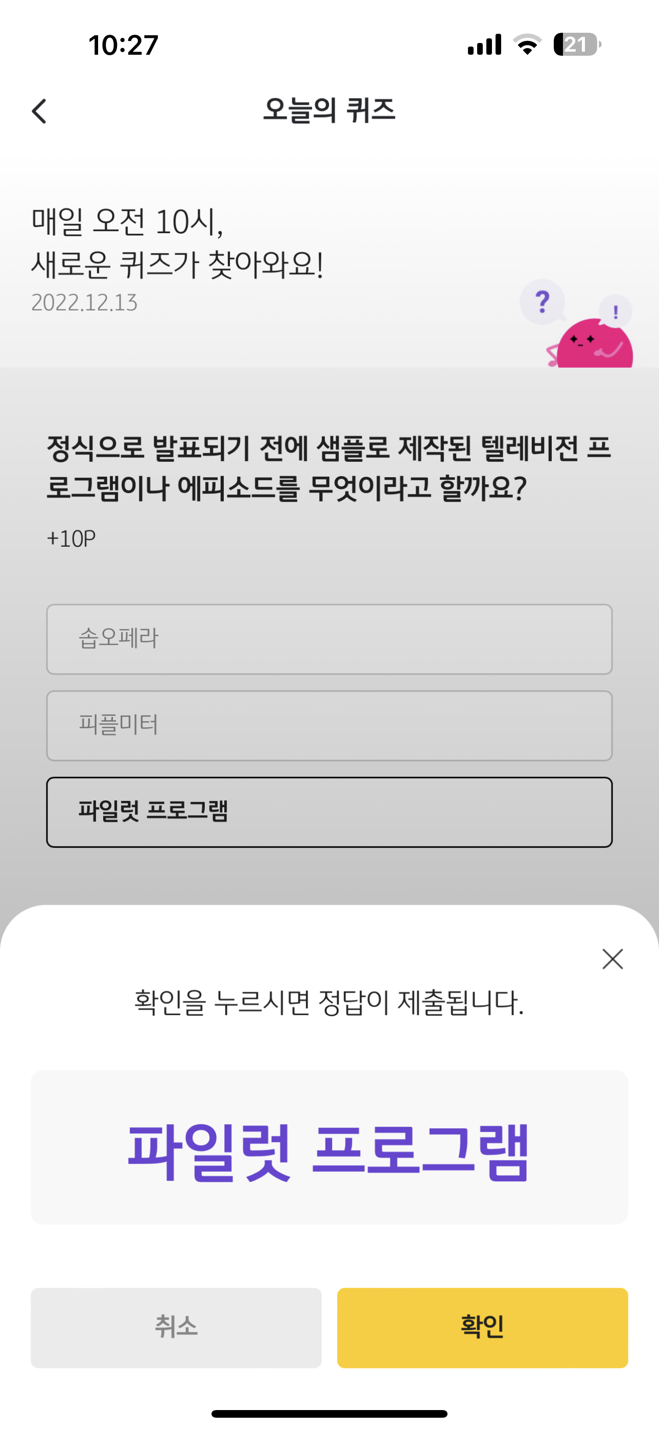리브메이트 KB PAY 오늘의 퀴즈 정답은 파일럿 프로그램 입니다.