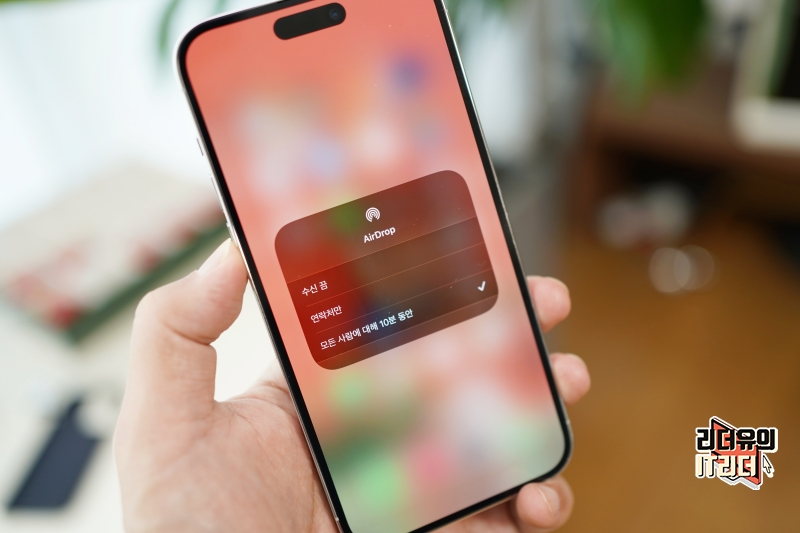 그럼 모든 사람에 대해 10분 동안 이라는 옵션이 생긴 것을 볼 수 있습니다. 이걸 선택하면 10분 동안만 연락처에 없는 사람에게 에어드랍(AirDrop)을 받을 수 있고 그 이후에는 자동으로 연락처만으로 돌아가게 되어 안전한 사용을 할 수 있습니다.