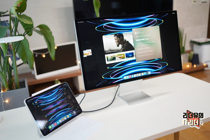 아이패드 프로 12.9인치 5세대 이상, 아이패드 프로 11 3세대 이상, 아이패드 에어 5세대 이상은 외장 디스플레이를 스테이지 매니저를 통해 컴퓨터 처럼 사용할 수 있습니다. 최대 6K 해상도까지 지원하고 디스플레이 간에 파일 및 윈도우를 드래그 앤 드롭도 가능합니다.