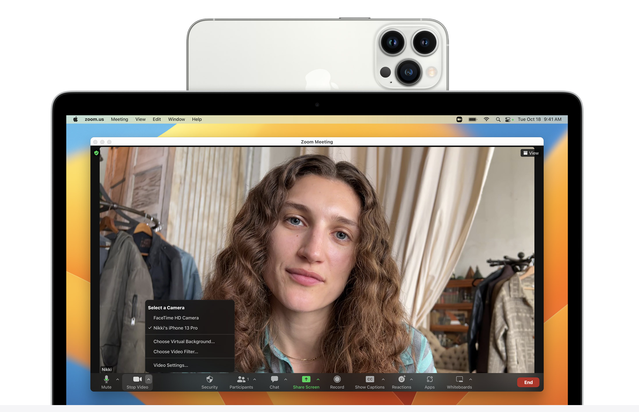 macOS Ventura (맥OS 벤츄라)에서는 아이폰 카메라를 웹캠으로 사용할 수 있는 기능을 지원합니다. 아이폰의 뛰어난 후면 카메라를 통해 화상 대화를 할 수 있게 한 것입니다. 그리고 아이폰의 광각 카메라를 이용해 카메라를 움직이지 않고도 책상 위를 볼 수 있는 데스크뷰를 지원합니다. 이런 다양한 활용을 위해서는 아이폰 맥세이프 연속성 카메라 마운트는 필수 입니다.