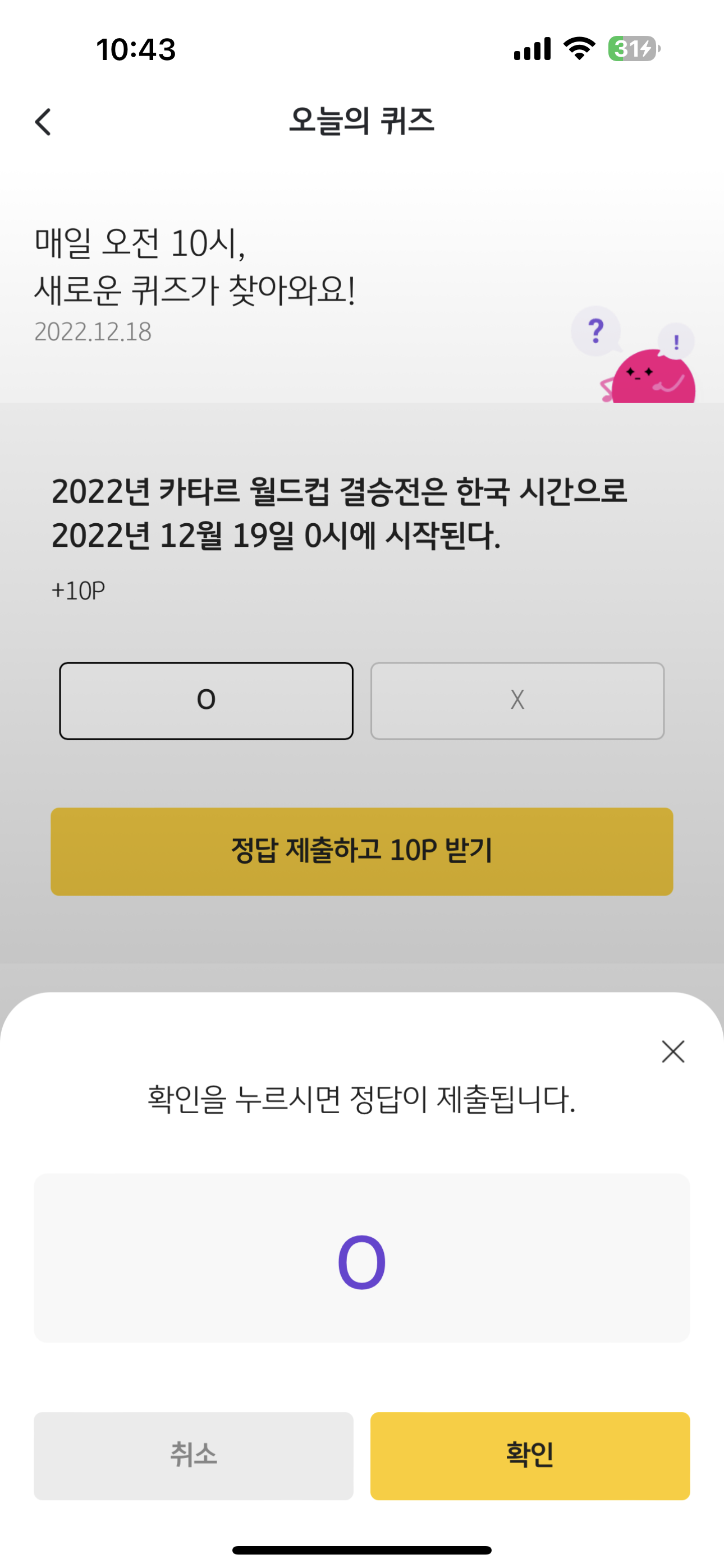 2022년 카타르 월드컵 결승전은 한국 시간으로 2022년 12월 19일 0시에 시작된다. O, X 퀴즈인데요. 드디어 2022 카타르 월드컵을 마무리 하는 날이라 기념으로 나온 것 같습니다. 8강전은 우리나라 시간으로 새벽 4시에 해서 카타르 월드컵 결승전도 새벽 4시라 착각할 수 있는데 아닙니다.